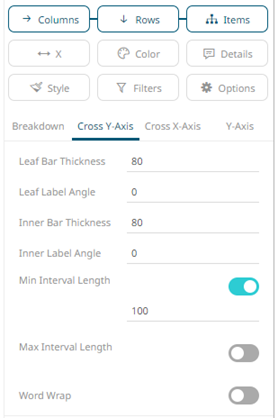 Visualizations that support cross tabbing include the following settings for both the X and Y axes.