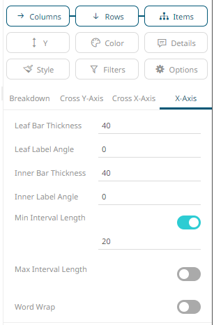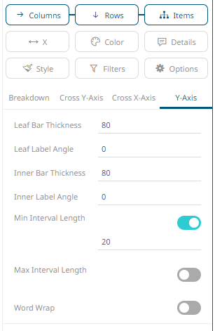 The X and Y axes of visualizations may include the following settings when accessed from the Breakdown section: