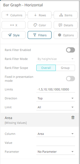 3. The column is added and the Visualization Settings pane changes to display the Filter properties.
