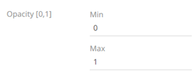 · This property is used as the opacity blending value between 0 (transparent) and 1 (opaque). · If an item has an undefined/null value, it will not be drawn. · The Min and Max opacity have a step of 0.01. |