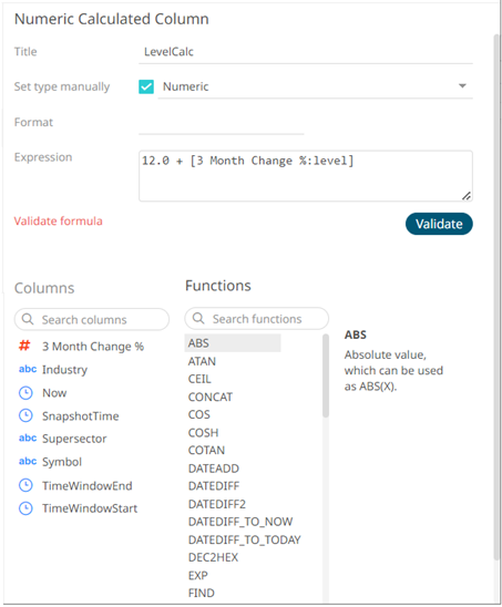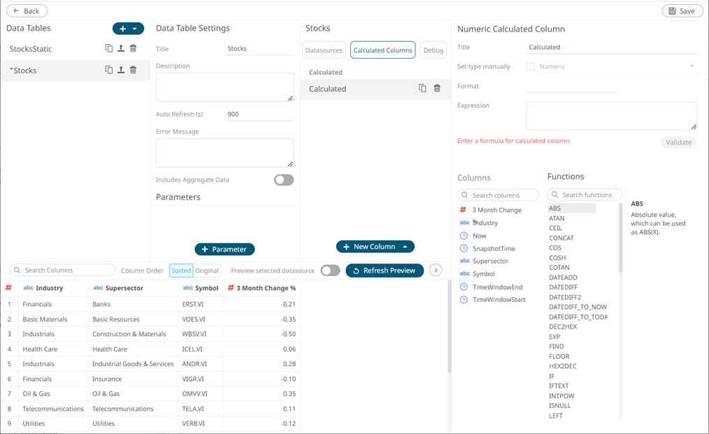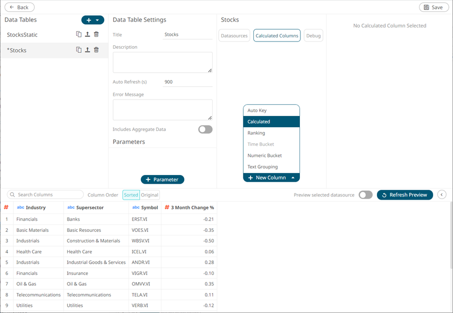 1.     On the Data Table Editor layout page, click Calculated Columns and select Calculated.