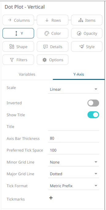 q  Y-Axis  variable drop area then selecting the Y-Axis tab (for Vertical Dot Plots) or
