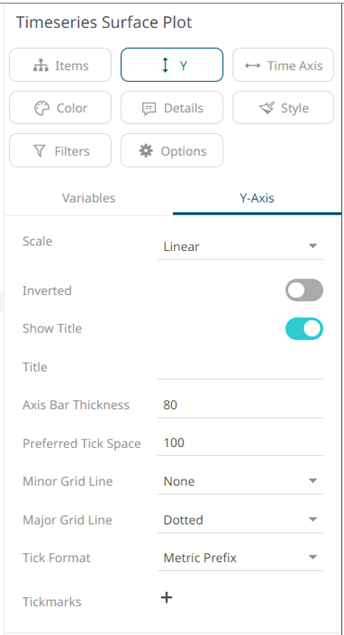 Other visualization-specific properties can be set by clicking on the Y-Axis variable drop area and then selecting the Y-Axis tab: