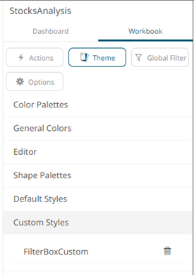 If published, the custom style configuration of the filter box will be added to the Global custom styles list and can be applied to other parts.