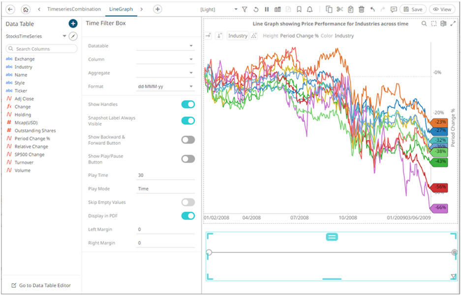2. Select a Data Table from the drop-down list then select the time series filter Column.