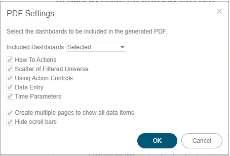 3. To output all the content within a visualization that has scroll bars, for example, to output all the rows within a table, check the Create multiple pages to show all data items box.