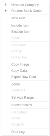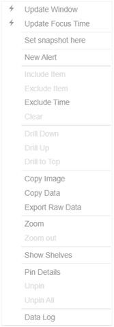 Allows visualization filtering. Options include: · Include Item · Exclude Item · Exclude Time · Clear |