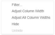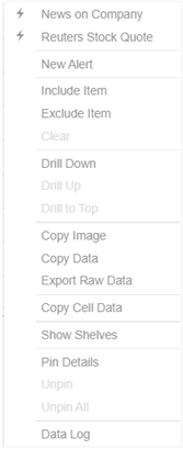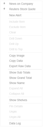 Allows exporting of data. Options include: · Copy Image · Copy Data · Export Raw Data · Copy Cell Data |
