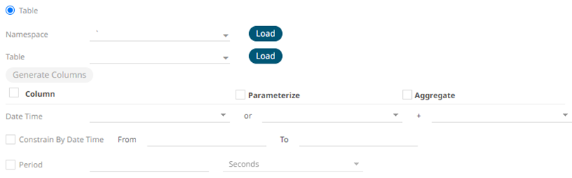 6. When Table is selected, the section below is enabled:
