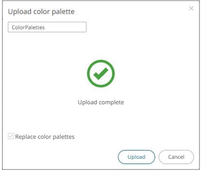 · Click Choose color palettes file to upload and then browse and select one on the Open dialog that displays.