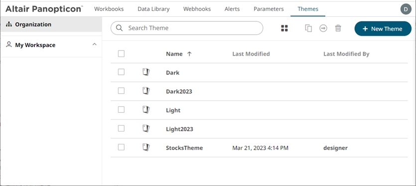 Unlike the default Dark, Dark 2023, Light, and Light2023 themes, new themes can be deleted. |