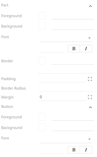 2. To define the default styles of the parts, click Part on the Default Styles pane. The Part Settings are displayed.