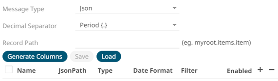 If JSON is selected, enter the Record Path which allows the identification of multiple records within the JSON document (e.g., myroot.items.item).