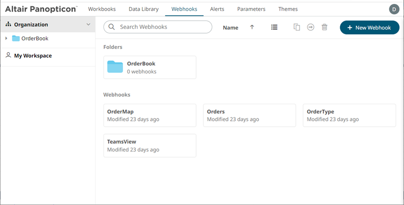 Folders and Webhooks Display View