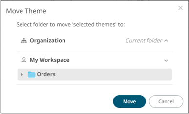 The Move Theme dialog displays with the folder or subfolders that the user is allowed to move the themes. Select the folder or subfolder.