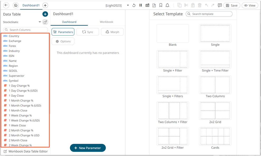 If there are available data tables that were selected in the Data Library page, the Data Library tab will be selected. This option has two steps:1. Select Data Table.
