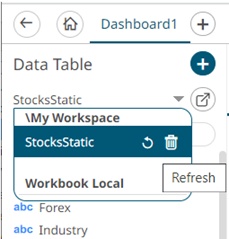 Data tables added from the Data Library using the Add Data Table wizard can be refreshed and deleted from the Data Table pane.
