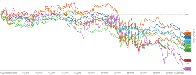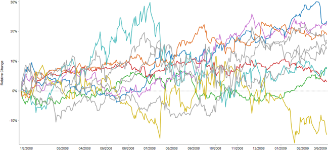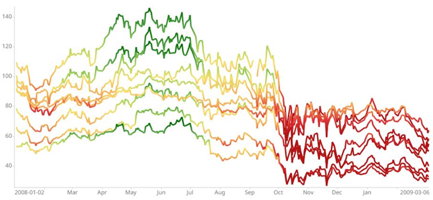 They work especially well when comparing ten or fewer data sets (our Horizon Graph is a good solution for displaying time series data with ten or more data sets).