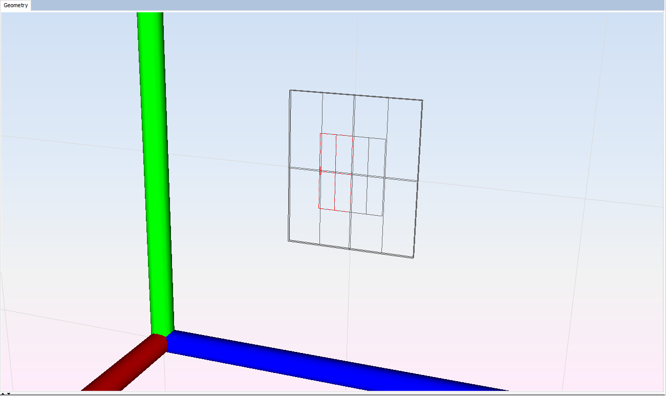 Clicking on 'Add' button, the final visualization for the antenna with a red dashed line for the coaxial feed will be shown.