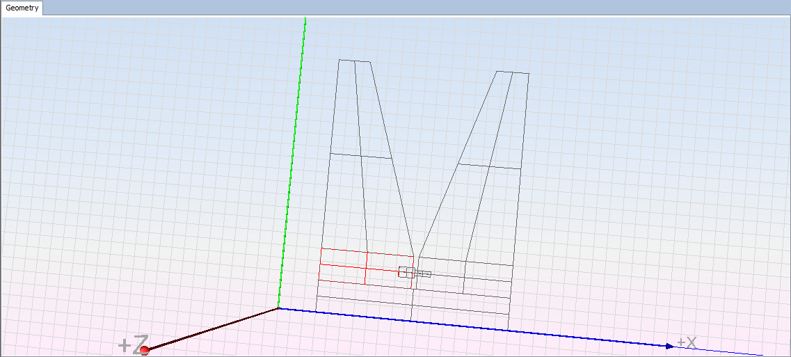 Clicking on 'Add' button, the final visualization for the antenna with a red dashed line for the coaxial feed will be shown.