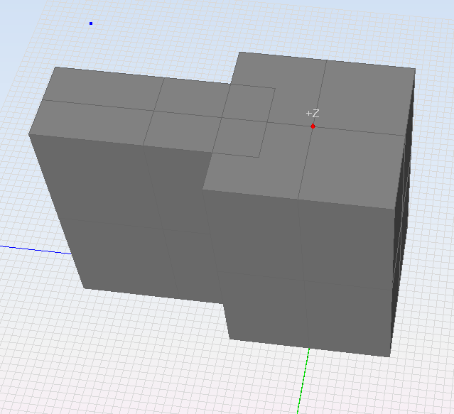 We want to run a boolean XOR operation in these two boxes, in order to end up with an object that encloses the non-shared regions of both boxes. To do this, we run the booleanXOR command in the following way: