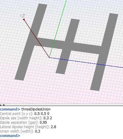 - threeDipolesUnion -n name -p x y z dipoleWidth centralDipoleHeight dipoleSeparation lateralDipoleHeight unionWidth: Create new set of joined dipoles.