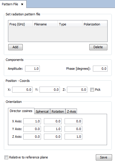 if this check box is selected, the position of the radiation pattern is relative to the reference plane.