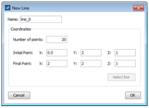 Step 9: Now add a line of observation points. Select the Output → Observation Points option. In the Geometry Types combo box, select Line and press the Add button. The following dialog will pop up. Set the line parameters as shown in the figure.
