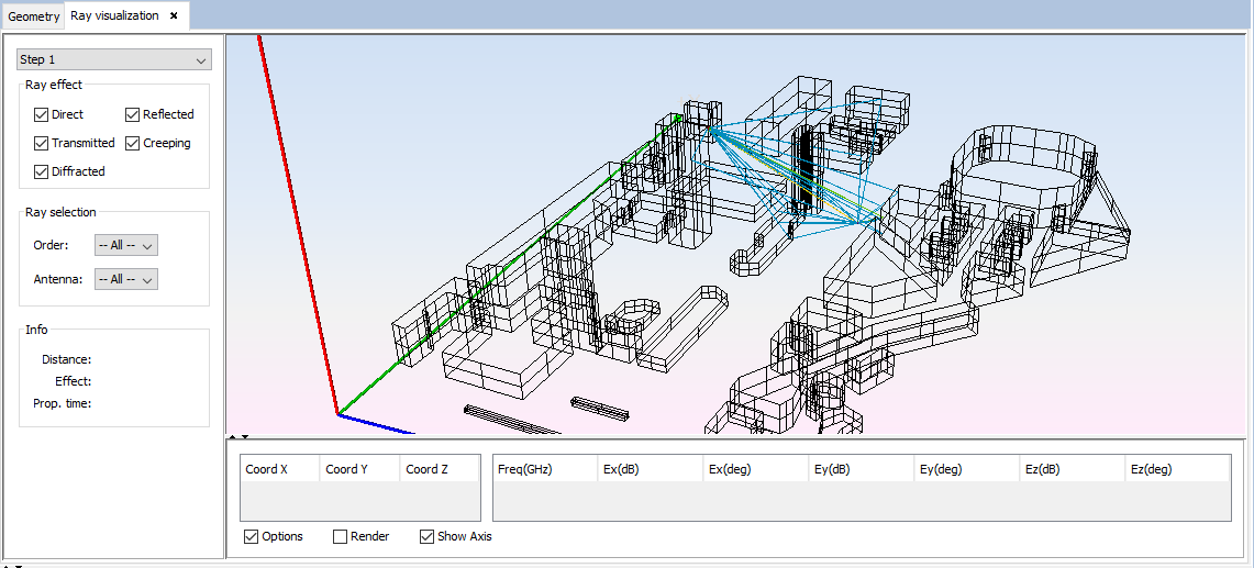 The ray tracing can be visualized by clicking Show Results – View Ray.
