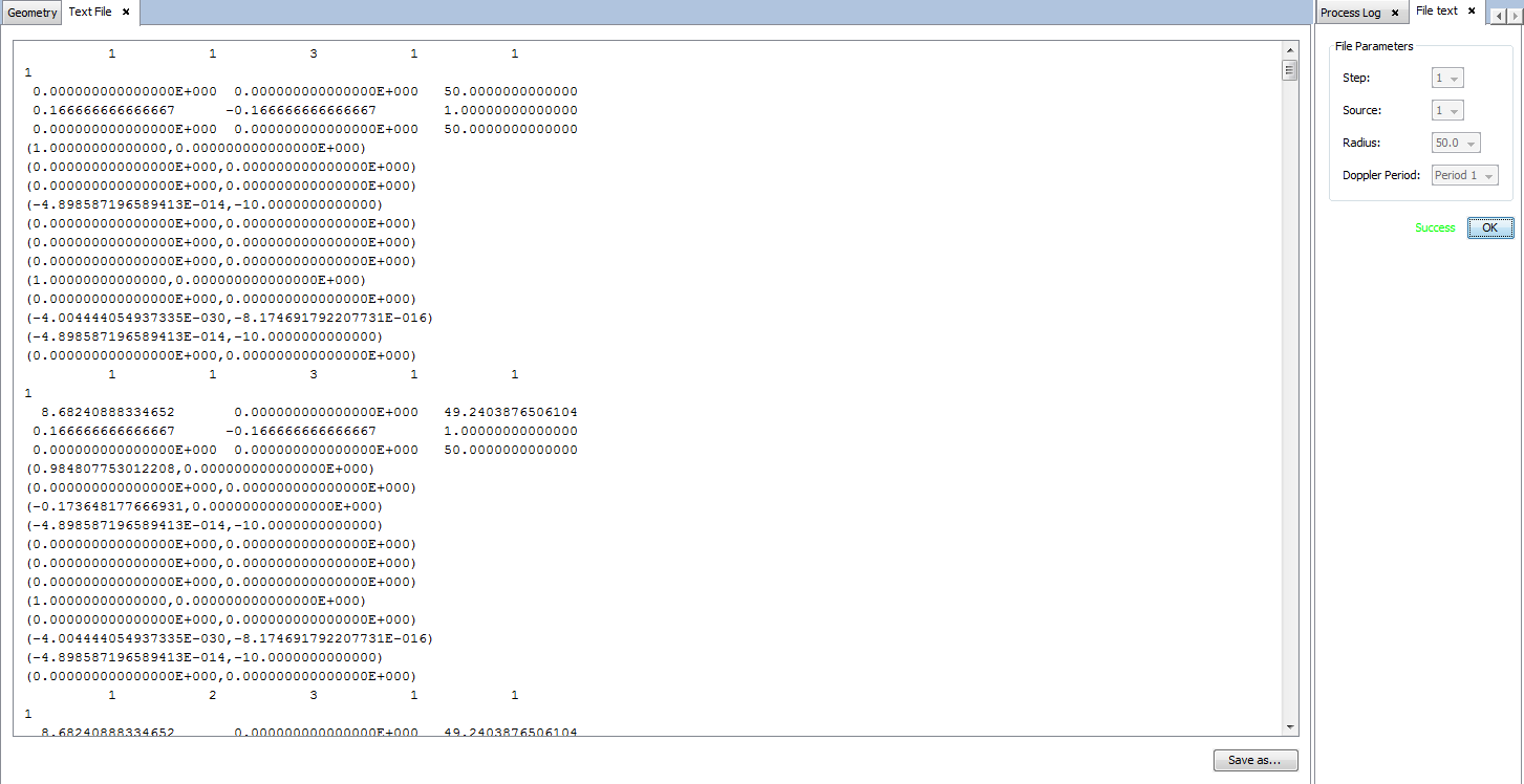 When the user selects the View Text Files option, a panel where the user can configure the results to be shown in the generated text file appears. The user can filter the results by step and radius.