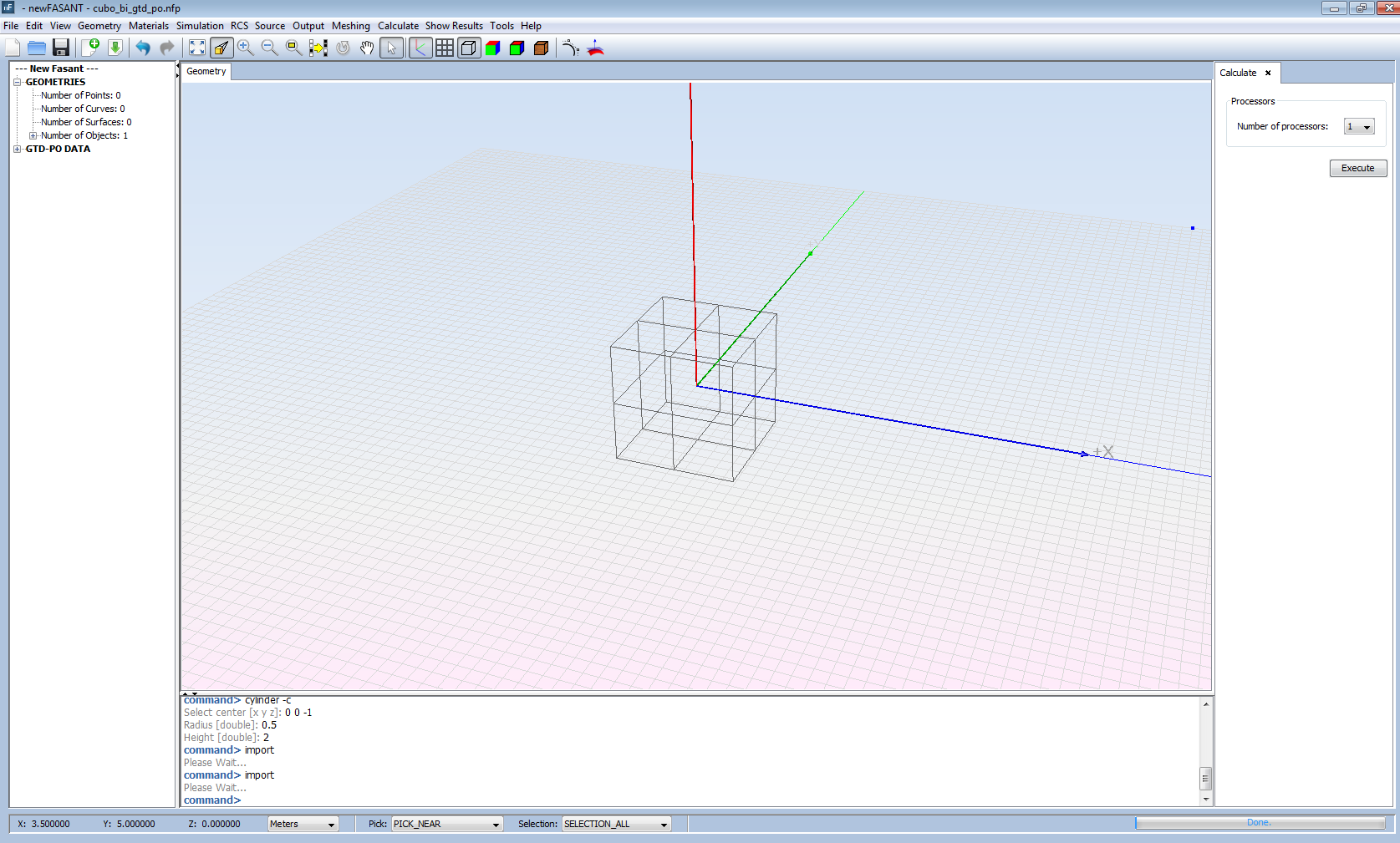 Click on Calculate -> Execute and choose the number of processors to use for the simulation. Then click on the Execute button and wait until it ends.