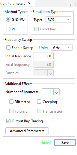 Figure 4. RCS parameters window