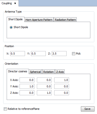 Click on Output -> Coupling to define the parameters of the passive source