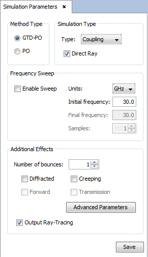 Figure 5. Coupling parameters panel.
