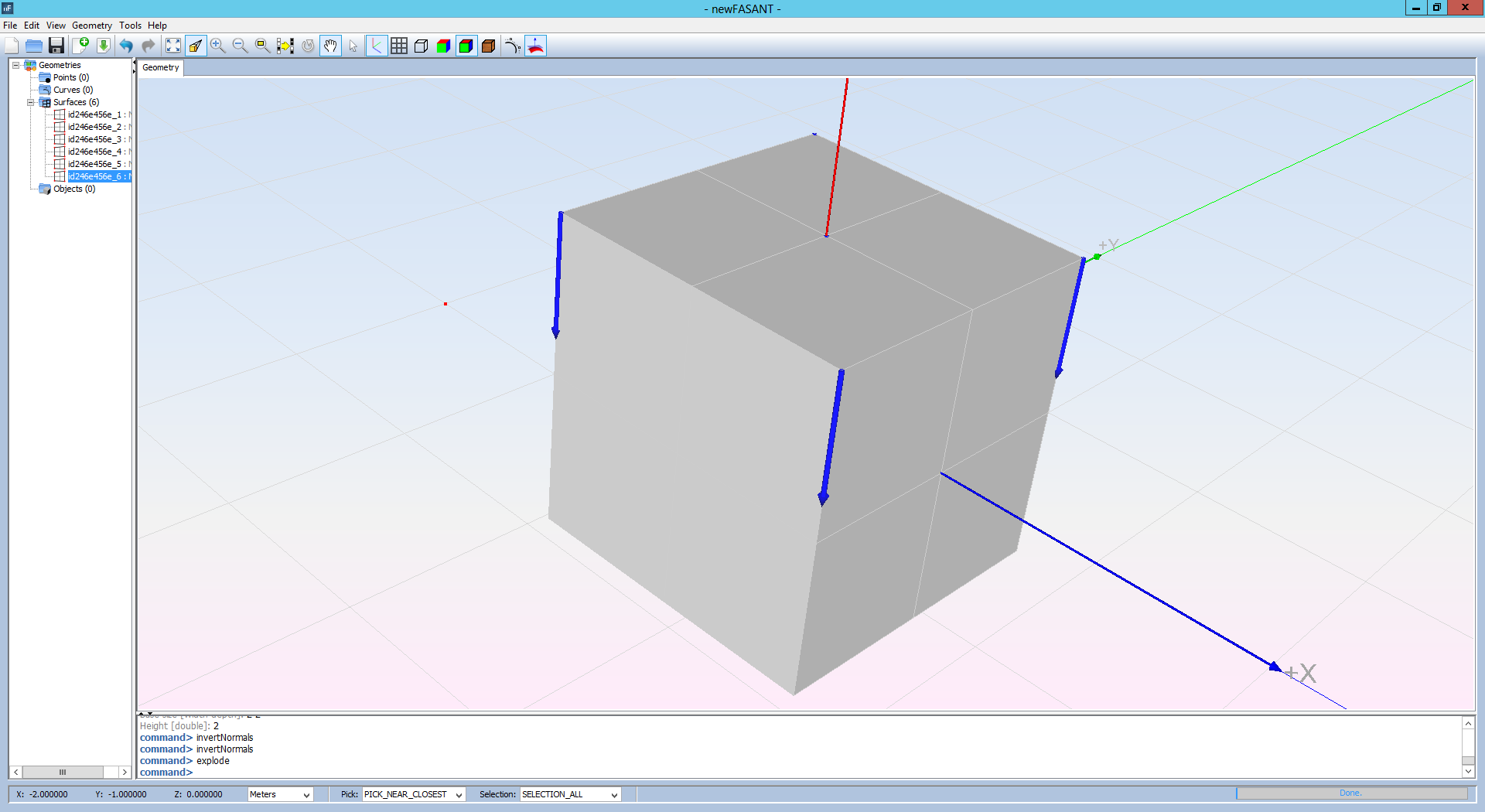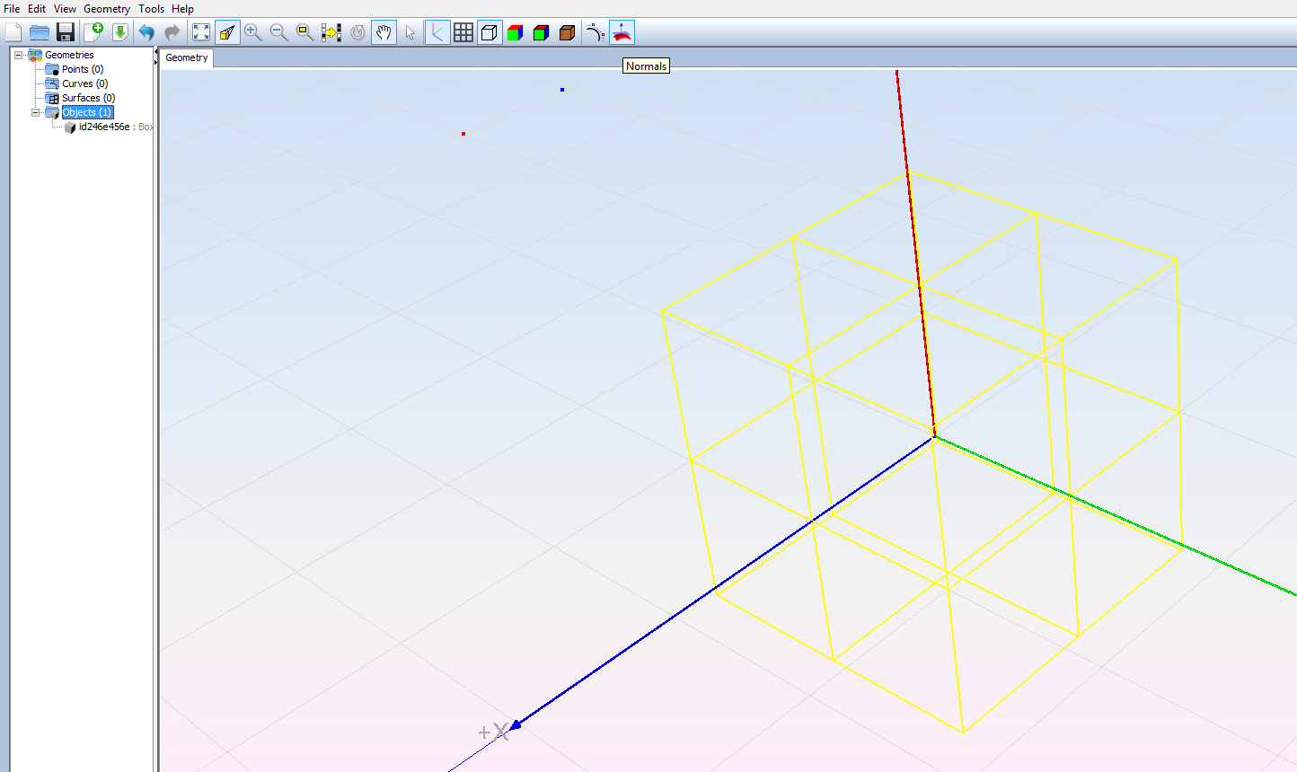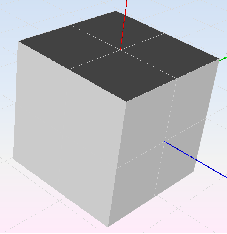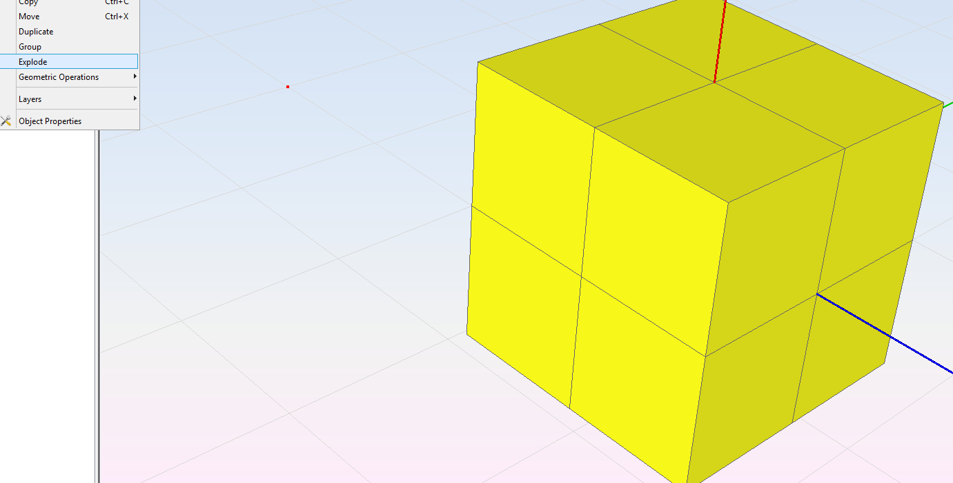 Now we will change the sense of the normal of only the surface in the top of the cube. We select the cube and explode it.