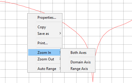 This option allow the user to reduce the visualization range of the chart to see less values. When this option is selected a sub-menu appears with three options to the zoom: