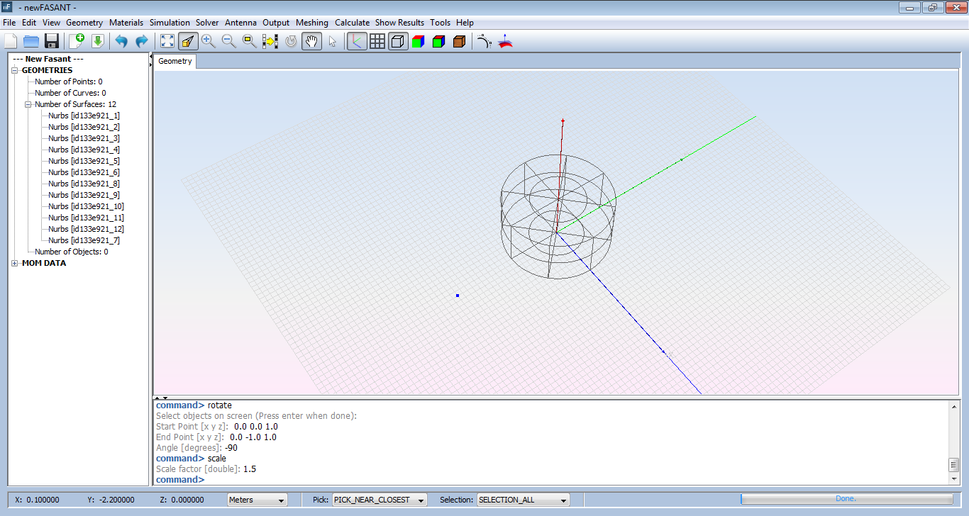 For example, introduce a cylinder and click on Edit - Geometric operations and symmetric, and select the surface as shown in the figure, pressing enter, introduce points as those seen in the following Figure and the result is shown in the subsequent Figure.