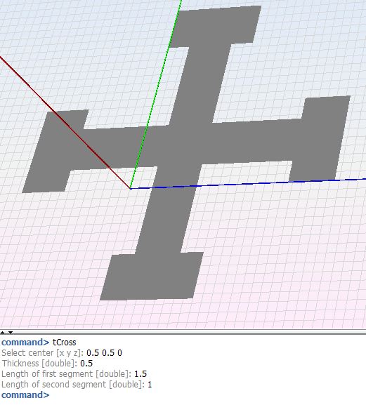 This option allows the user to create a cross with T-shaped segments. The parameters needed for the creation of this type of surface are the following: