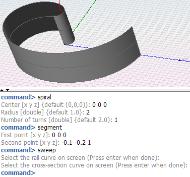 The command sweep generates a surface by sweeping a given cross-section (profile) curve along the rail curve. The resulting surface is always placed on the rail curve.