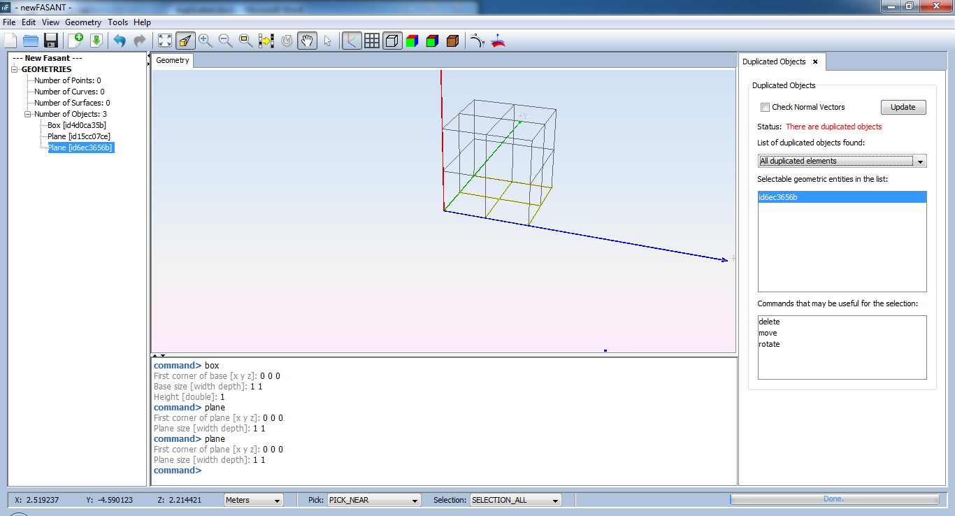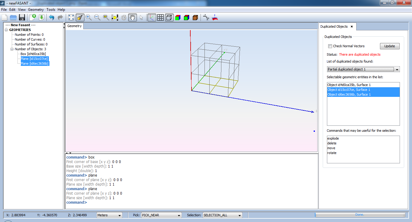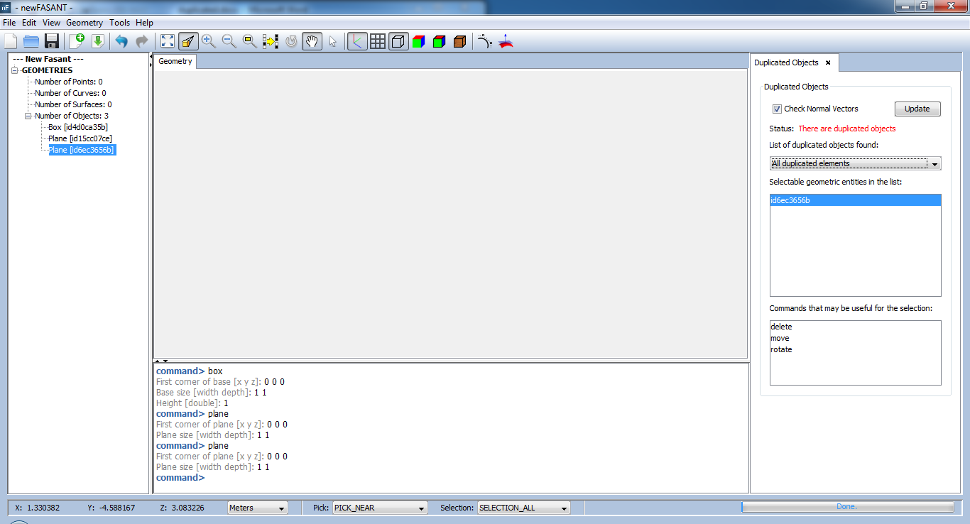 Click on Geometry – Tools – Duplicated Objects to check the duplicated elements identified in the geometry.