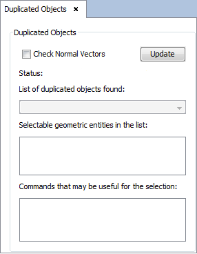 • Update Button Press it to repeat the identification of the duplicated elements in the current geometry. It is necessary when the Check Normal Vector option or some elements of the geometry have been modified.