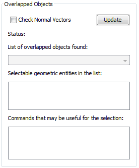 • Update Button Press it to repeat the identification of the overlapped elements in the current geometry. It is necessary if the Check Normal Vector option or some elements of the geometry have been modified.
