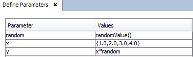 Create the three parameters that are shown in next figure. Note that it is only an training example without further purposes, as the random (and then the y) parameters depend on the randomValue(), so its values will be different whenever the simulation step changes.