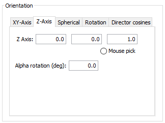 The reference plane is normal to the specified Z axis. Once the plane is defined, it also may be rotated by specifying the Alpha rotation angle, in degrees.