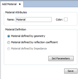 Material Definition - Material defined by reflection coefficient. Used to define a material according to its reflection coefficient. After clicking on the Set Parameters button, two different options are available in the Material defined by reflection window ( the following Figure):