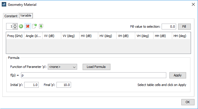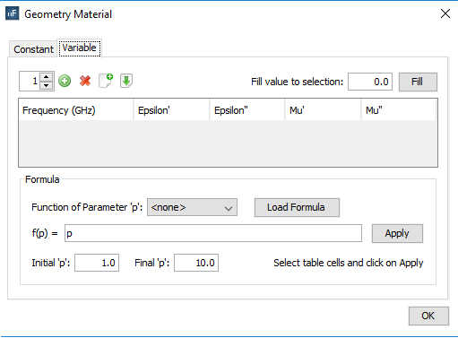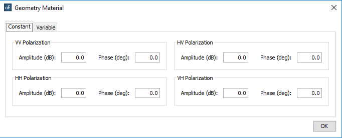 To set the material properties invariable. Amplitude and Phase are defined using decibels (dB) and degrees (degrees).