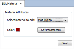 This panel allows the user to select an existing material to edit its properties. Refer to Materials Menu (MOM Module) for details on setting the color and physical parameters of materials.