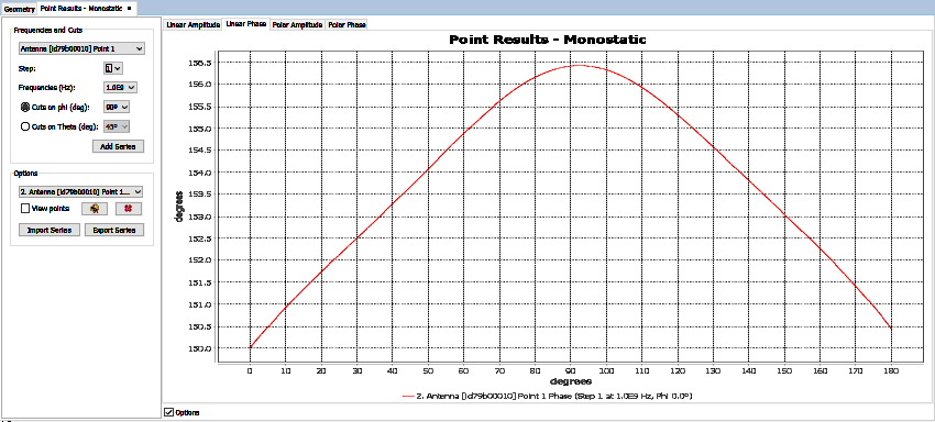 Figure 10. Monostatic View Cuts panel. Linear Phase