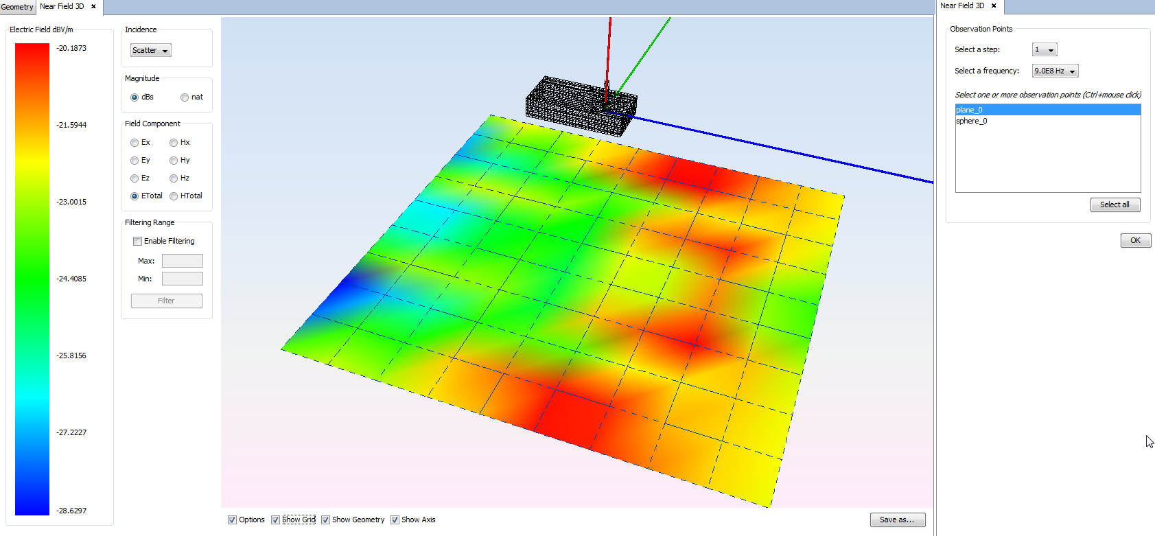 • Observation points List with all the observation points entities defined. Select the desired ones to plot the near field results.