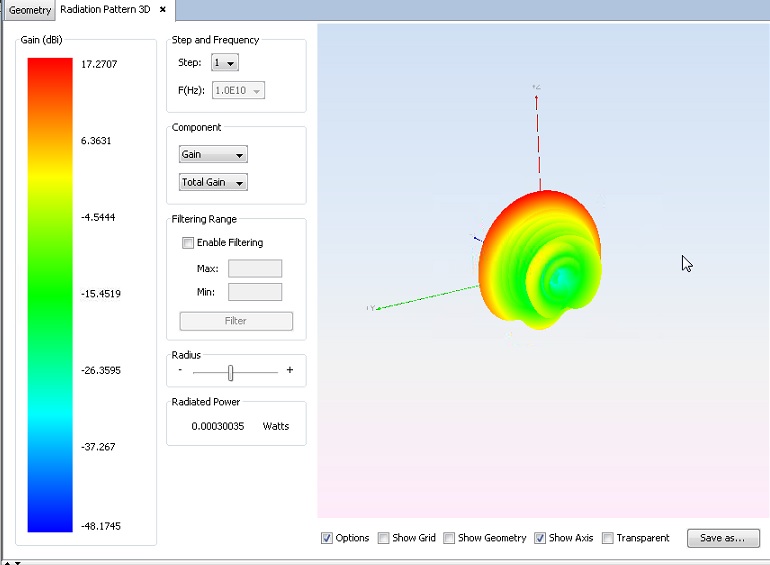 On Show Results --> Radiation Pattern menu, other results are present such as View Cuts by Step and View Cuts by Frequency and this option display the values for one selected point for each step or frequency.